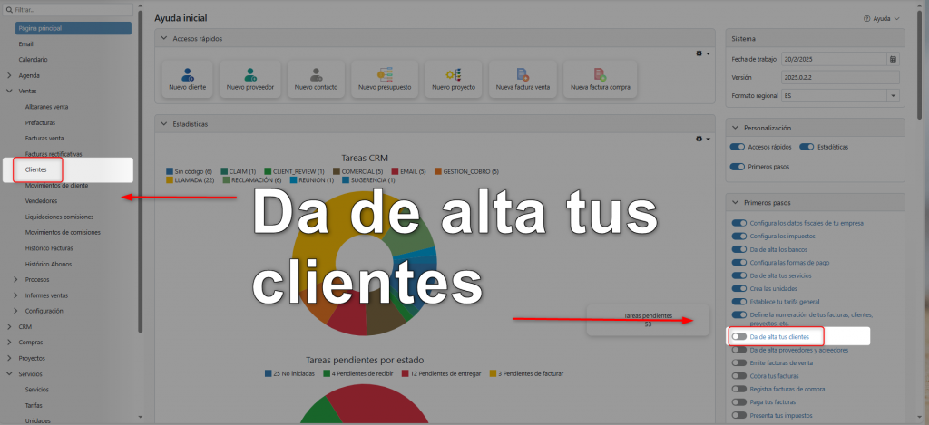 En la parte derecha de la ficha tienes accesos directos a todos los documentos relacionados con el cliente (facturas, proyectos, presupuestos, etc.)