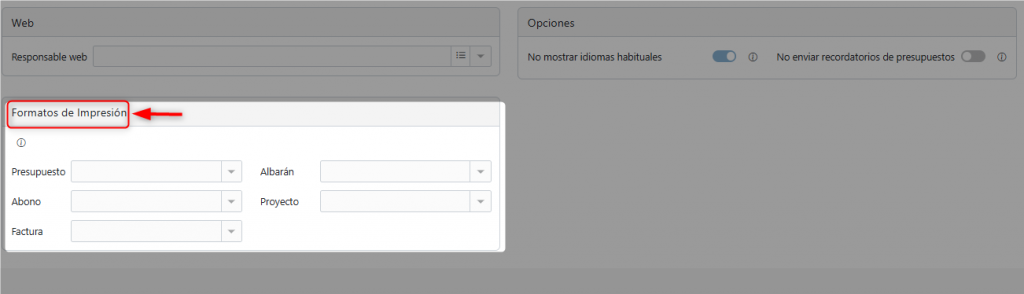 Sección Formatos de Impresión #