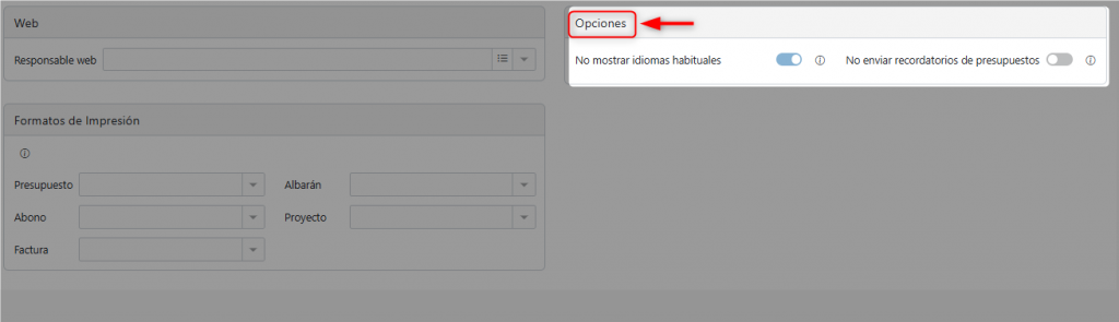 No enviar recordatorios de presupuestos: Envío automático de recordatorios de presupuestos pendientes de aceptar al cliente.