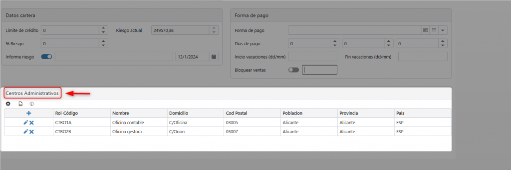 Bancos: Aquí se pueden registrar los datos bancarios del cliente, que se utilizarán posteriormente para remesas, recibos y otras operaciones.